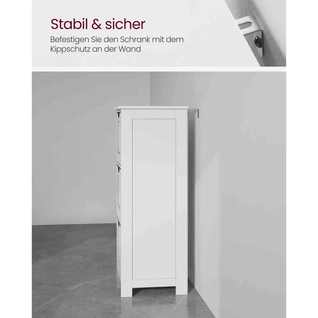 Všestranná: Máte málo miesta? Vďaka kompaktným rozmerom 32 x 30 x 81 cm (D x Š x V) zaberá táto podlahová skrinka veľmi málo miesta a dá sa ľahko umiestniť medzi nábytok alebo do rohov, ktoré ste považovali za príliš úzke.