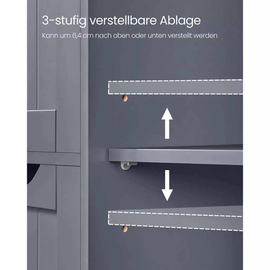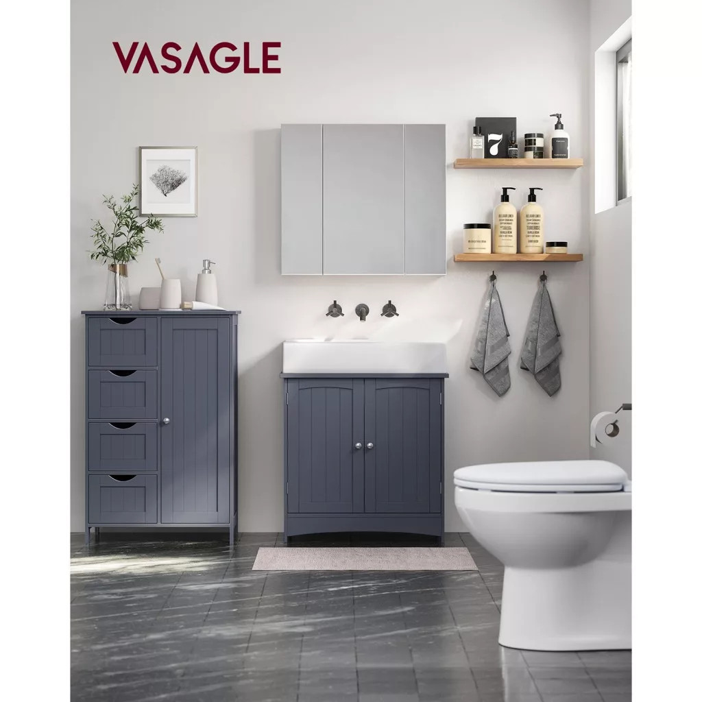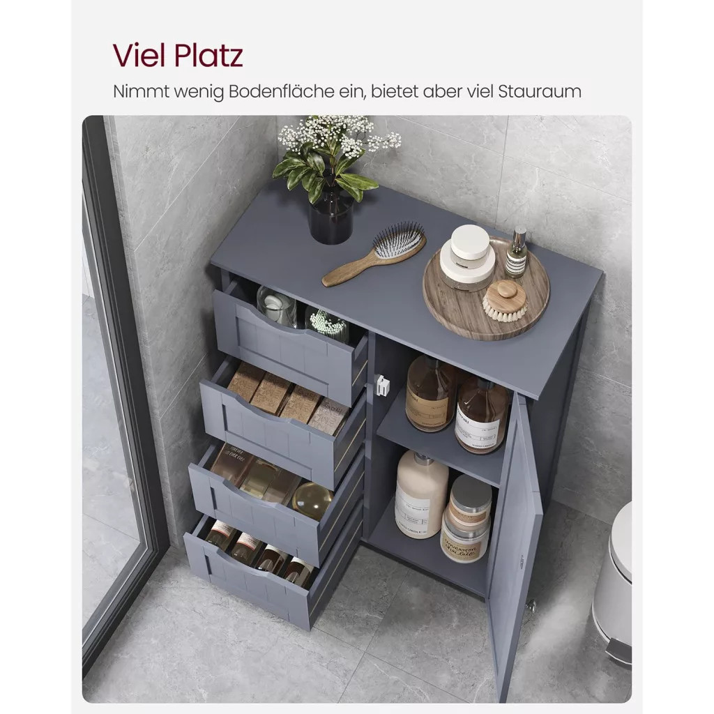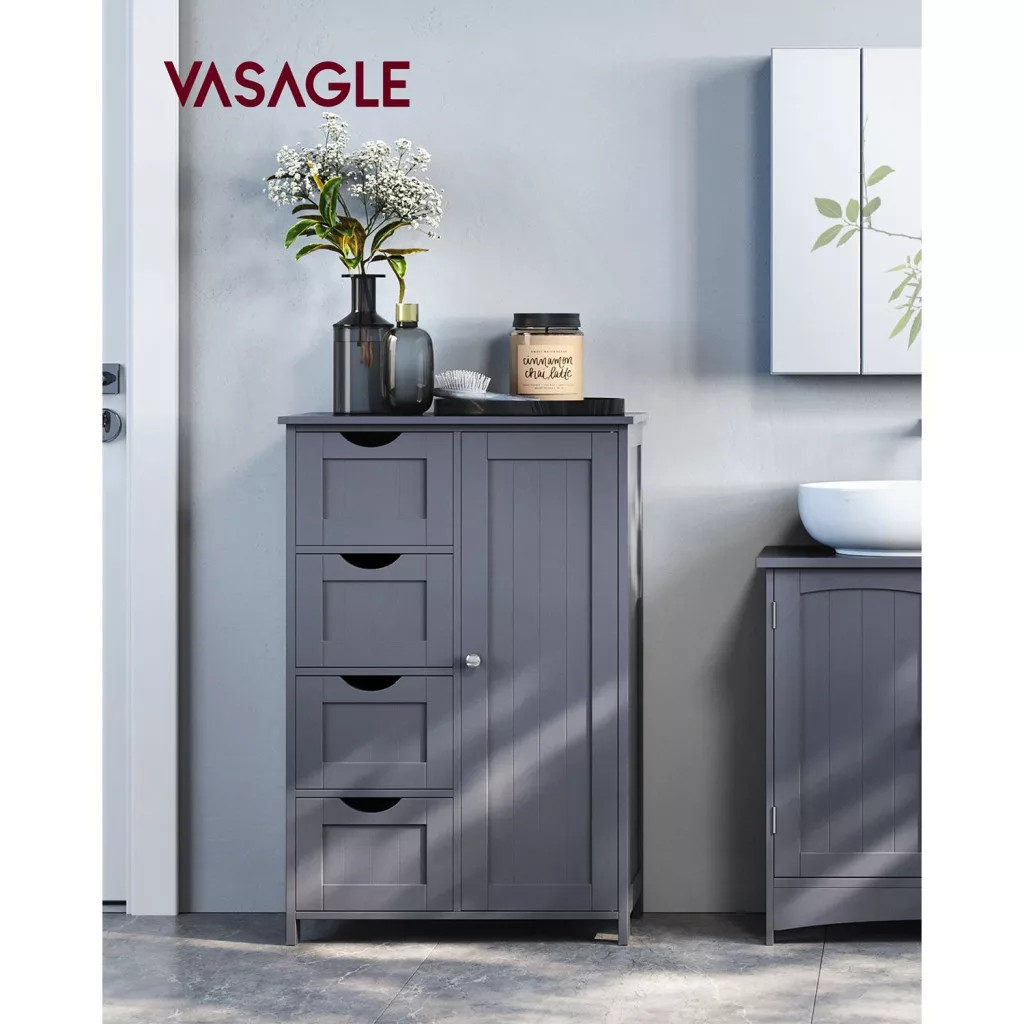 VASAGLE Kúpeľňová skrinka, skrinka so 4 zásuvkami a 1 dvierkami, sivá 55x30x81cm