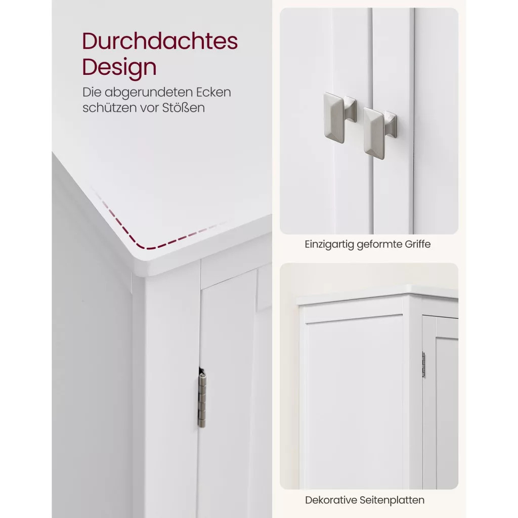Zaručená bezpečnosť: Zaoblené rohy zabraňujú nárazom a priložená sada proti prevráteniu pomáha upevniť kúpeľňovú skrinku na stenu. Oba detaily prispievajú k vytvoreniu bezpečného obytného prostredia.
