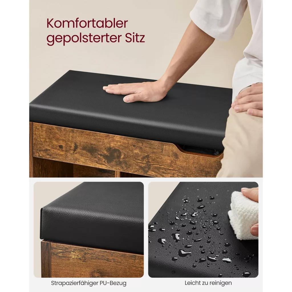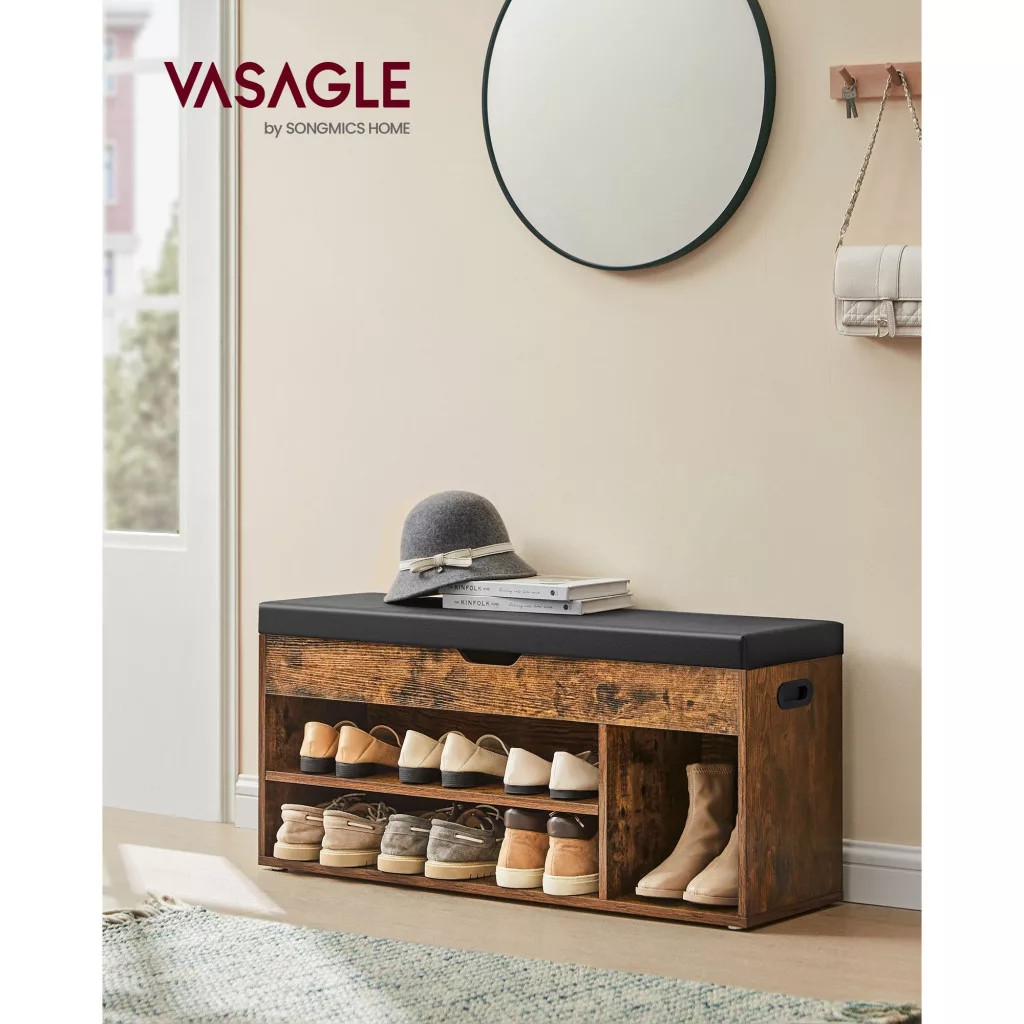 VASAGLE Lavica na topánky s polstrovaným sedadlom, otvárateľná, rustikálna hnedá 100x30x44cm