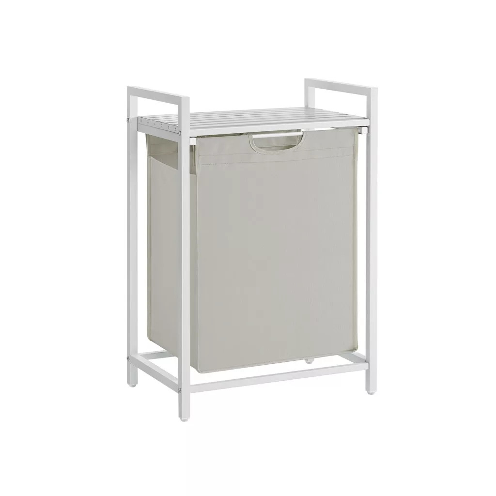 VASAGLE kôš na bielizeň, výsuvný a odnímateľný vešiak na oblečenie s vreckom, biely