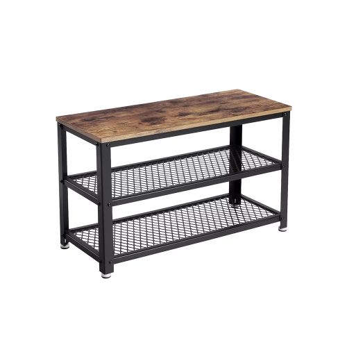 VASAGLE Lavica na topánky s dvoma úložnými úrovňami, rustikálna hnedá 73x30x45cm