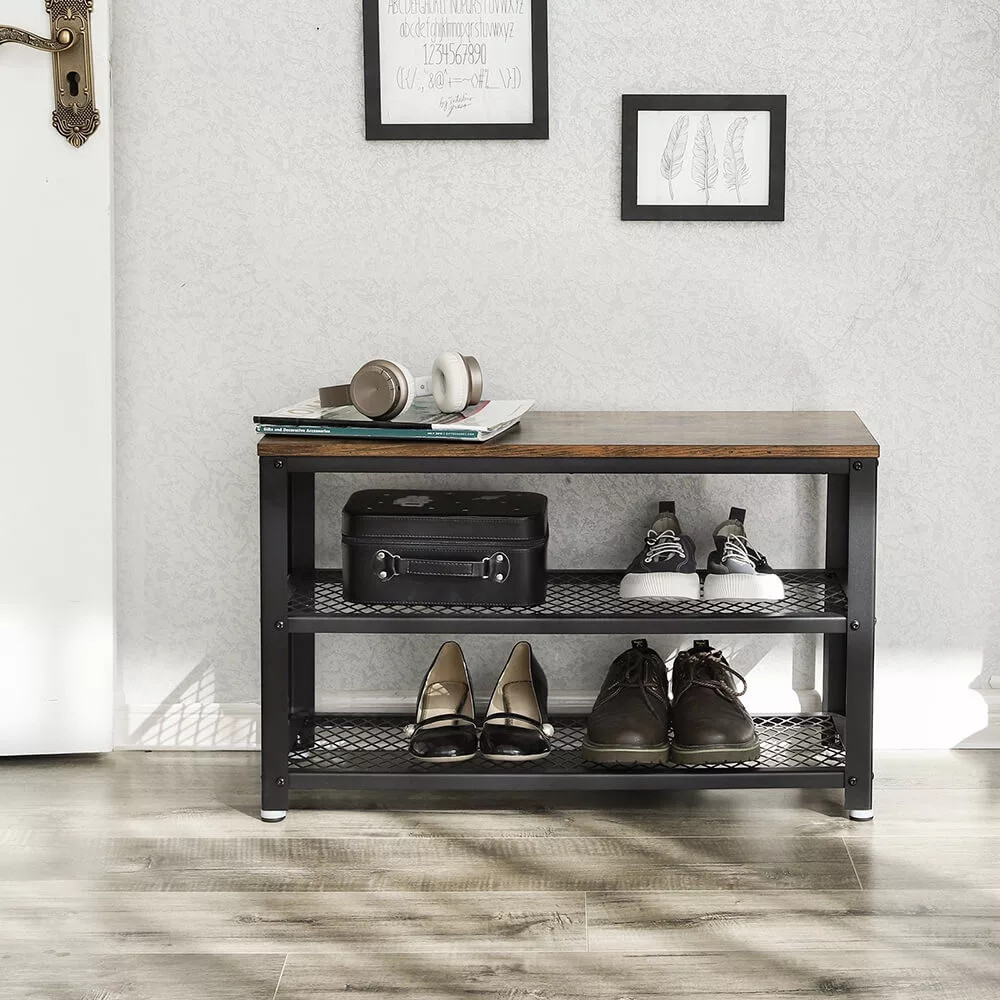 Odolný dizajn: Robustná lavička na topánky vyrobená z robustného oceľového rámu a drevotriesky unesie až 90 kg; prečo si na nej pohodlne nesadnúť, kým si zaväzujete šnúrky na topánkach alebo čakáte na ostatných?