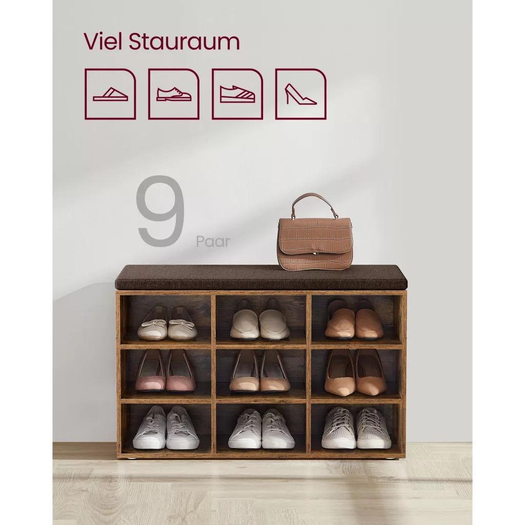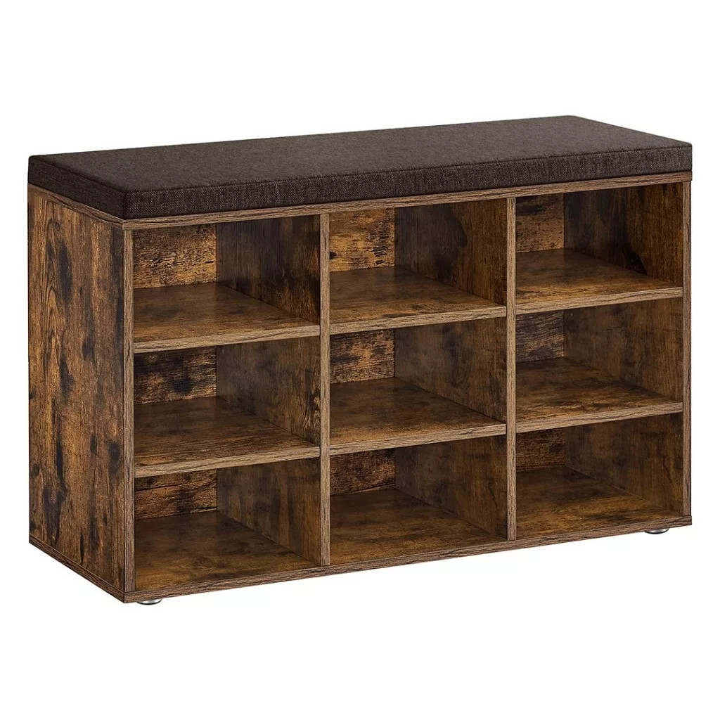 VASAGLE Lavica na topánky s polstrovaným sedadlom, rustikálna hnedá 78x30x48cm